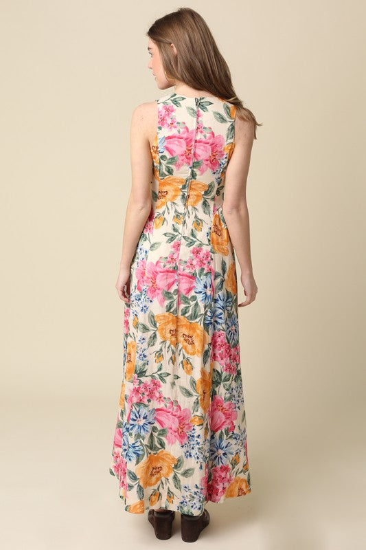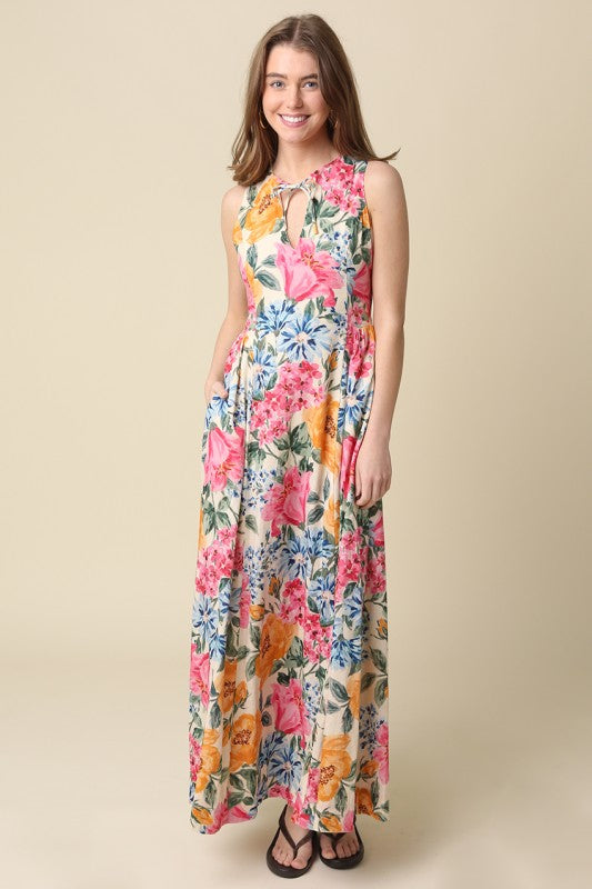 Tie Neck Floral Maxi Dress