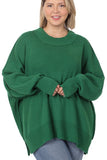 Super soft short sleeve sweatshirt with half zip front, collared neck, and ribbed hem.