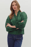 Burgundy silky top with v-neck, high low hem, and cuffed short sleeves.